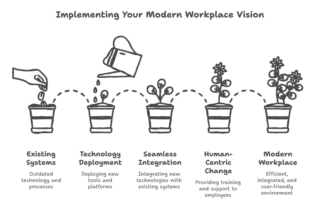 We begin by developing a deep understanding of your business, your people, and your goals. We analyze your current technology stack, workflows, and pain points to create a customized roadmap for your Modern Workplace. This isn’t about a one-size-fits-all solution; it’s about designing a strategy that aligns with your specific needs and objectives.