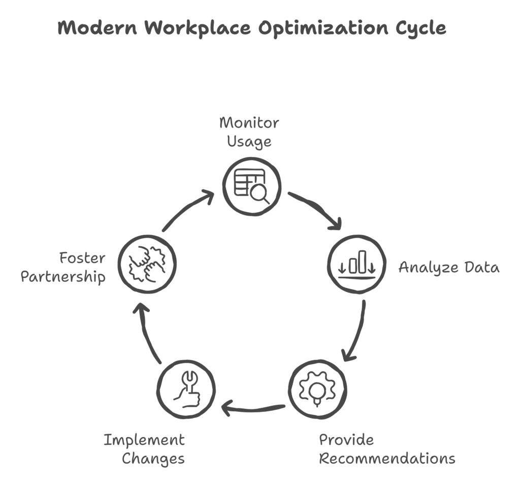 Your Modern Workplace is not a one-time project; it’s an ongoing evolution. We provide continuous management and optimization to ensure you’re getting the most out of your investment. We monitor usage, gather feedback, and make ongoing recommendations to enhance productivity, improve security, and drive business impact.