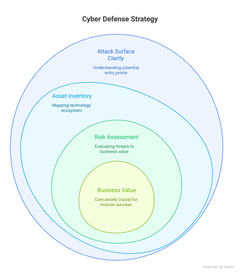 Effective cyber defense starts with clear visibility into your attack surface. Our approach ensures security efforts are aligned with what matters most to your organization.